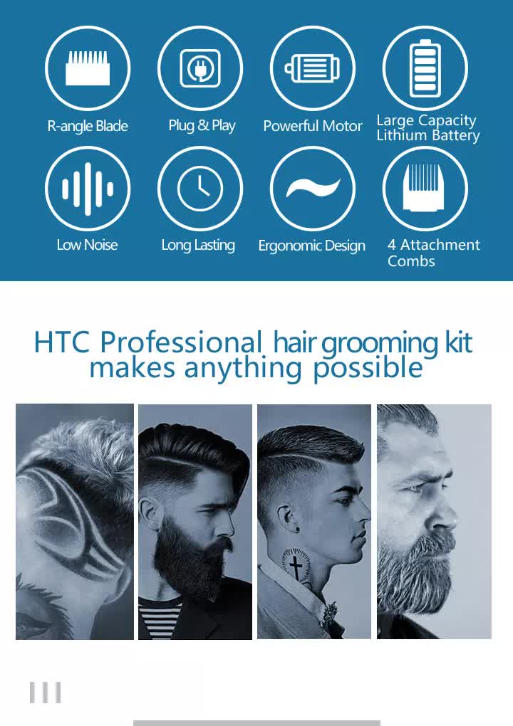 Product details of HTC AT-1322 Professional Clipper Trimmer Shaver 3 in 1 mens grooming care kit Rechargeable hair clipper Hair Trimmer