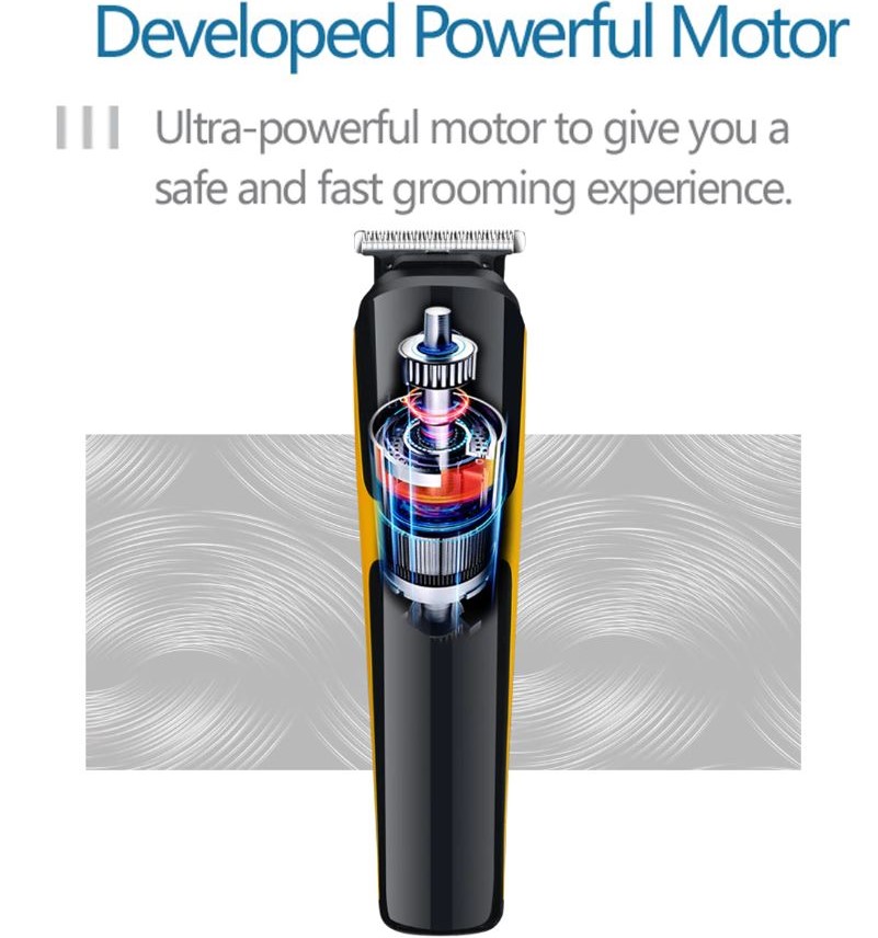 >High carbon steal,self sharping and cut faster and are anti-corrosion>Precision R-blade>Powerful Motor>Automatic Grinding>Food Grade material>The Clipe Hair-5to7mm>Plug & Ply>Low Noise>Shave Beard Wet & Dry>2 hour charge,120 minutes working