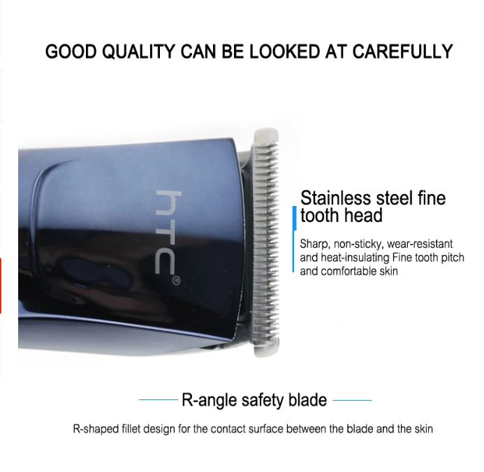 Brand: HTC Model: AT-228 Warranty: one month service warranty Charging time: 6 hours Using time: 50 minutes Color: Multi-color Body material: ABS Blade material: High-grade stainless steel blade Power supply: Electric Battery type: NI-CD battery Battery capacity: 600MAH x 2 Rated power: 3 W Rated voltage: 220-240 V Rated frequency: 50/60Hz