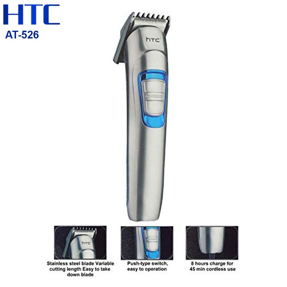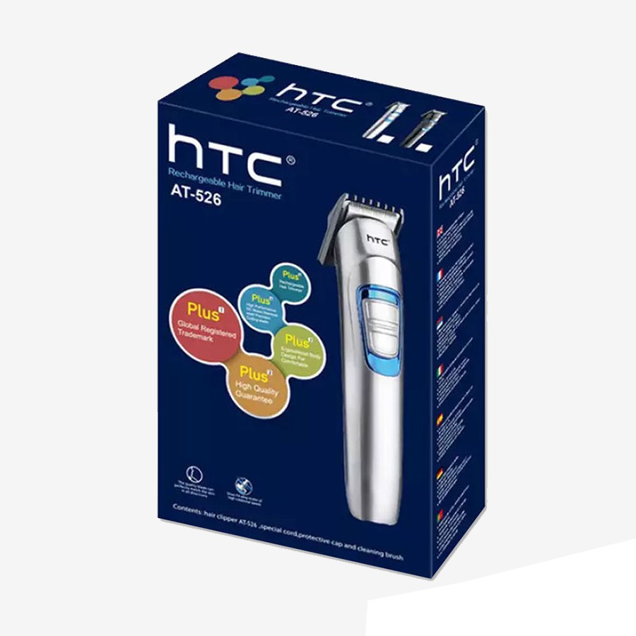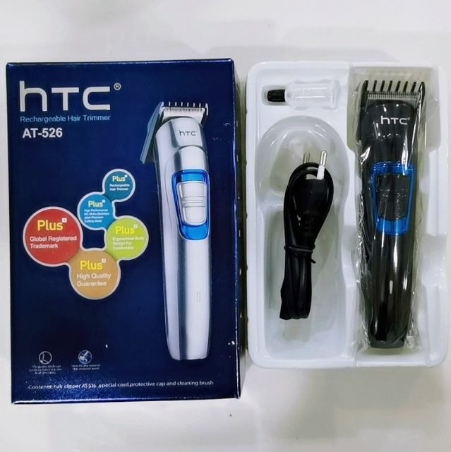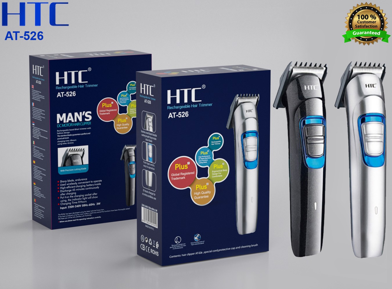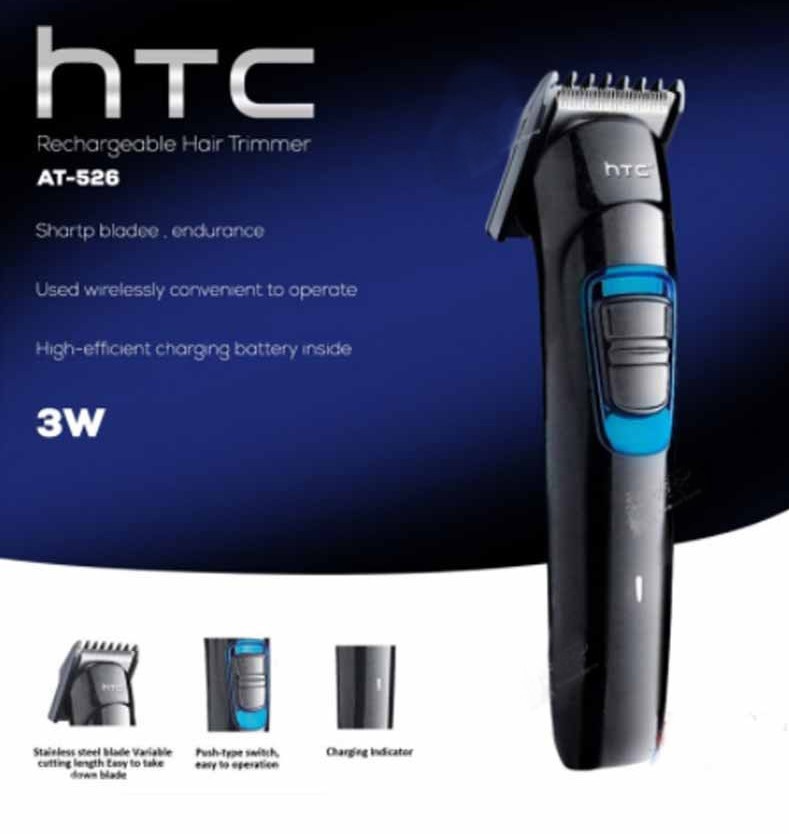 Specification : Brand: HTC Model: AT-526 Color: Black, Silver Body material: ABS Blade material: Stainless steel Power source: Electric Run time: 45 minutes Charging time: 8 hours Rated power: 3 W Rated voltage: 110-220 V Rated frequency: 50/60Hz Country of origin: China Attachment comb: Adjustable ( 3, 4, 5, 6, and 7 mm )