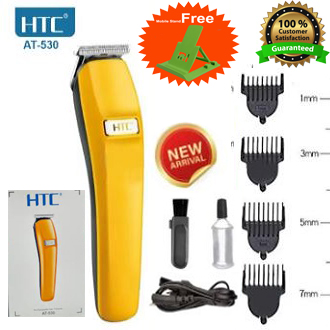 The HTC AT-530 is a hair and beard trimmer designed for men. It features an ergonomic design for comfortable use and is powered by a rechargeable battery. The trimmer also comes with adjustable comb attachments to achieve different hair lengths. It is lightweight and portable, making it easy to use at home or while travelling. The bright yellow color gives it a stylish and modern look.