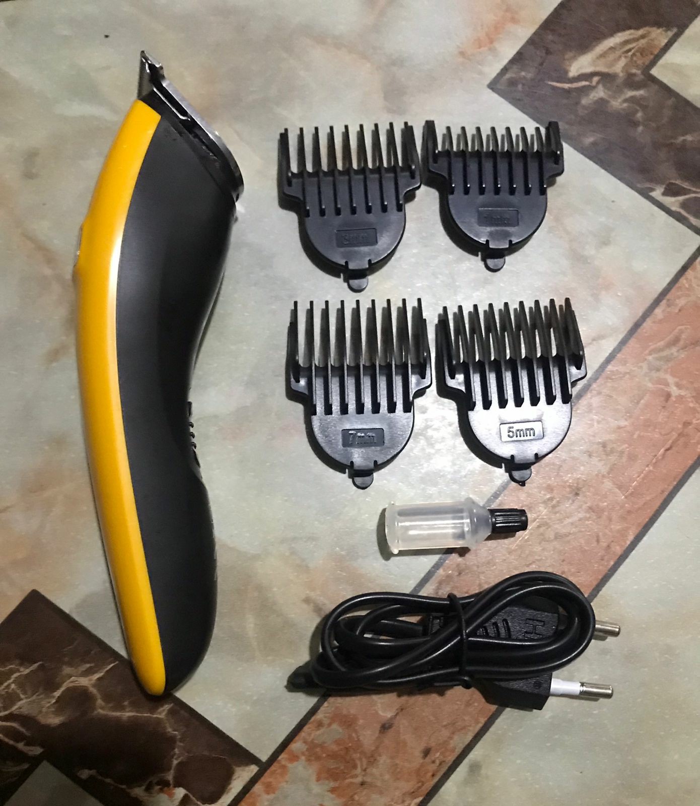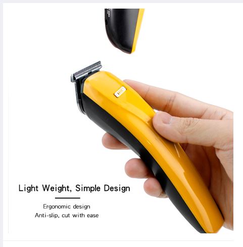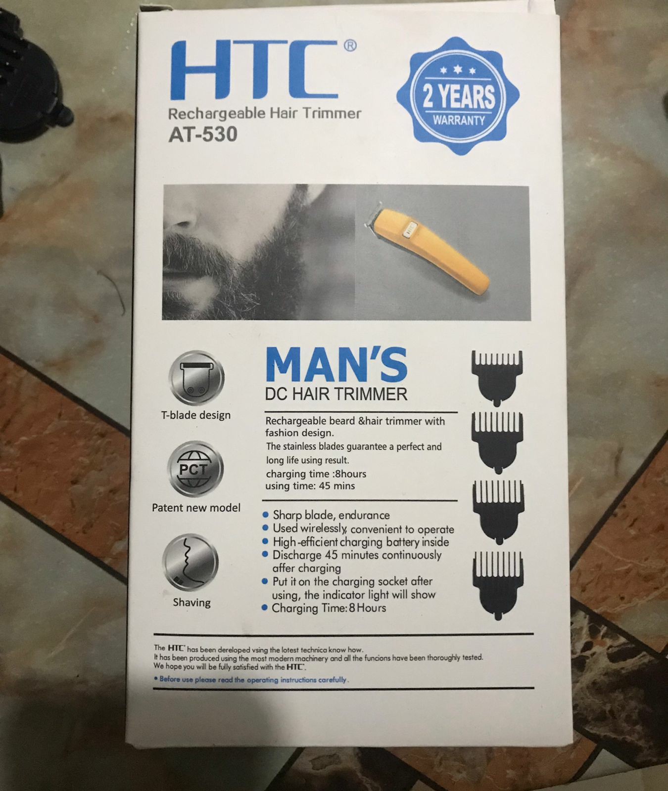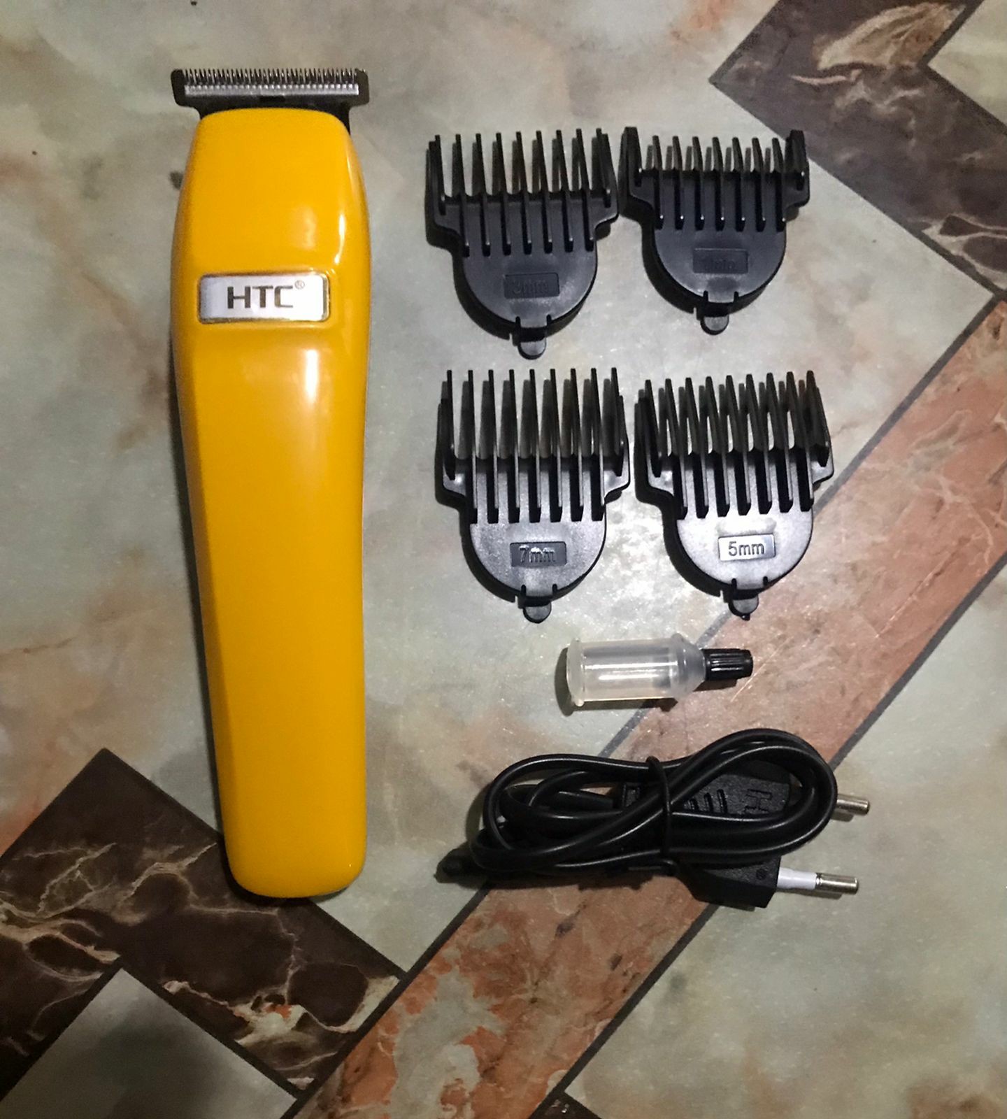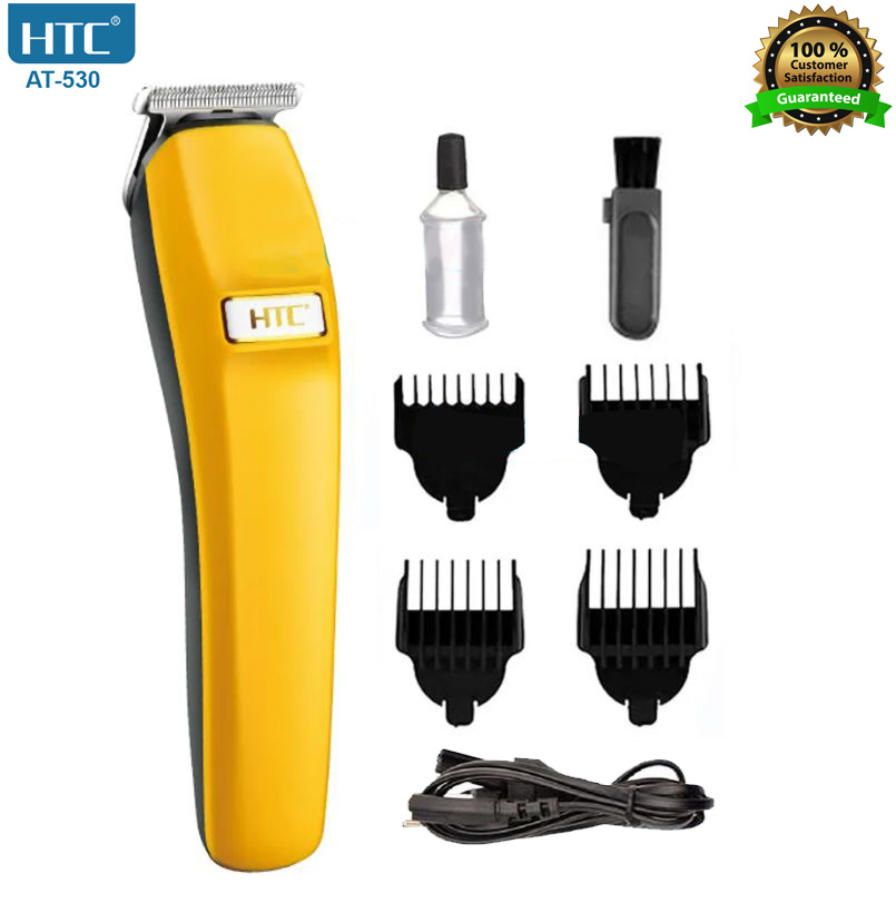 The HTC AT-530 is a hair and beard trimmer designed for men. It features an ergonomic design for comfortable use and is powered by a rechargeable battery. The trimmer also comes with adjustable comb attachments to achieve different hair lengths. It is lightweight and portable, making it easy to use at home or while travelling. The bright yellow color gives it a stylish and modern look.