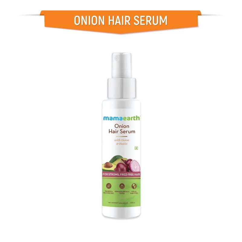 Looking for a hair serum that chases away all your hair problems while keeping them strong and frizz-free? Your search ends now. Good hair days are here with Mamaearth Onion Hair Serum for frizzy and stronger hair. It’s time to trust the goodness of onion – an age-old home remedy to address hair issues like frizz, breakage, and hair fall. Onion – rich in Sulfur – makes your hair strong & reduces breakage. Biotin improves overall hair quality, reduces breakage, and increases thickness. Olive Oil helps in making hair smooth, and frizz-free. Safe for colored, chemically treated hair, this Serum suits all hair types, and is free of harmful chemicals & toxins