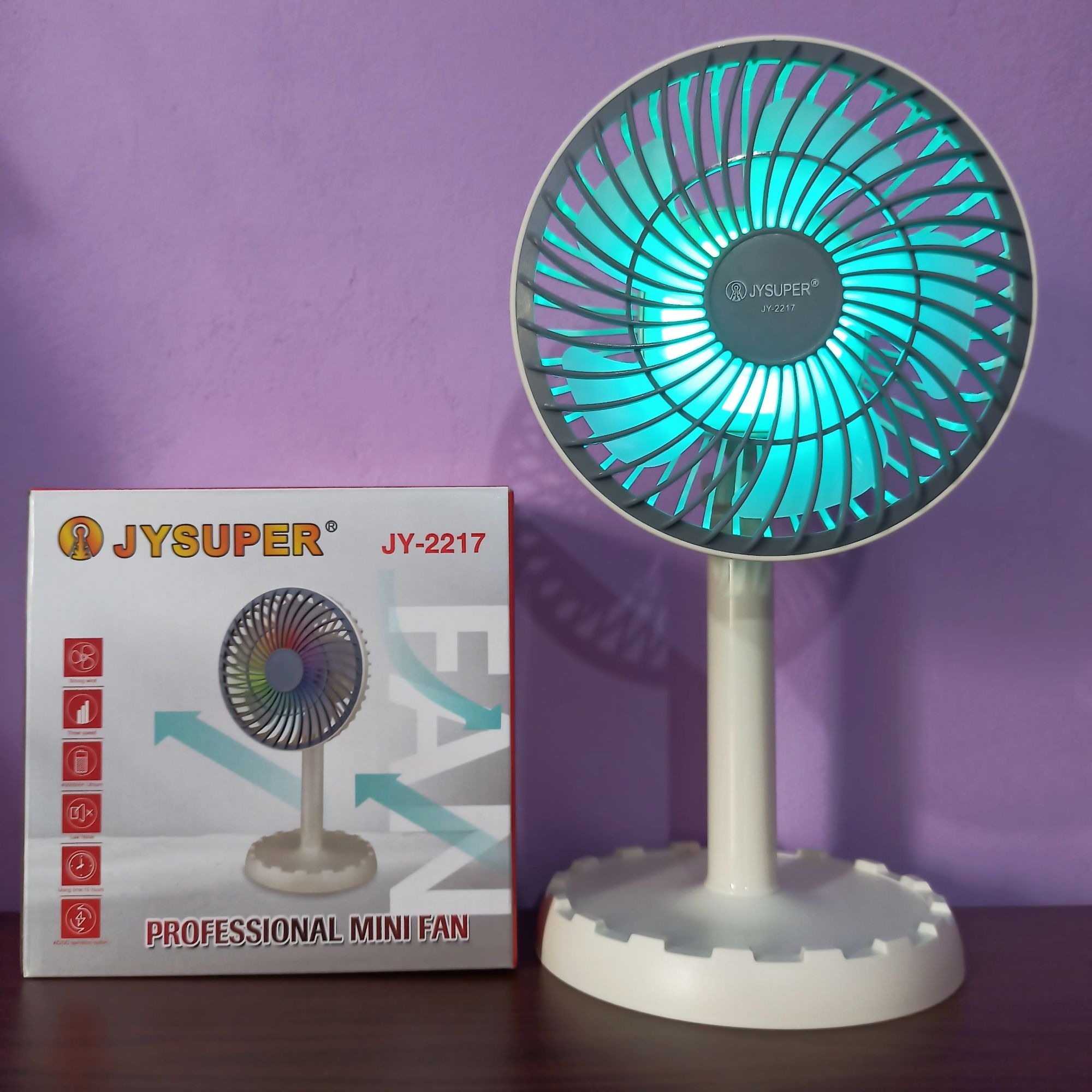 Stay cool and comfortable with the Joy Super Jy - 2217 Rechargeable Mini Fan, designed for ultimate portability and performance. This 12.5-inch compact fan comes with a powerful 4000mAh battery, offering long-lasting usage without needing constant charging. Whether you're at home, at work, or on the go — this fan ensures strong wind flow with minimal noise. The fan supports USB charging, making it compatible with power banks, laptops, and adapters. Its adjustable speed settings let you control airflow as needed. Lightweight and easy to carry, this fan is perfect for summer days, outdoor events, or emergency power outages. A must-have solution for heat relief with modern design and efficient performance.