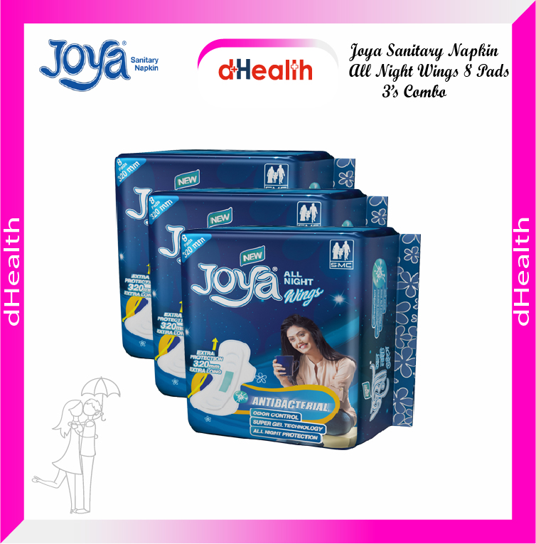 Joya Sanitary Napkin All Night Wings 8 Pads 3,s Combo Pack (Panty/Wings System)