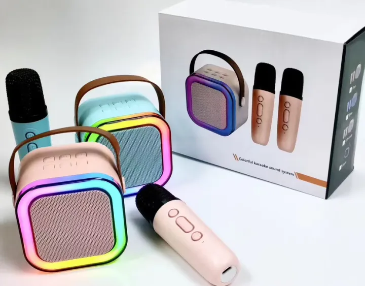 - This K12 is a karaoke powerful sound speaker with two microphones. It also comes with vibrant RGB lighting that will add an impressive visual element to the party. It also has a Bluetooth 5.0 technology that can be connected to stream music from a smartphone or tablet. It has 8W sound power output that will enhance your singing performance and immerse you in high-quality sound experience, giving you a clear audio output experience.