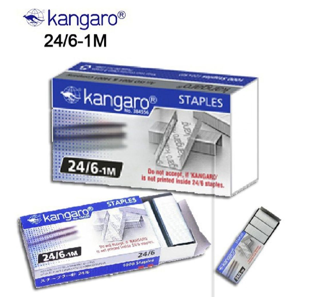l- Keep your documents neat, secure, and professionally bound with Kangaroo 24/6 Staples Pin. These high-quality staples are crafted with precision from galvanized steel, making them strong, durable, and rust-resistant. Whether you're working in an office, attending classes, or managing home paperwork, Kangaroo staples ensure smooth, jam-free stapling every time.