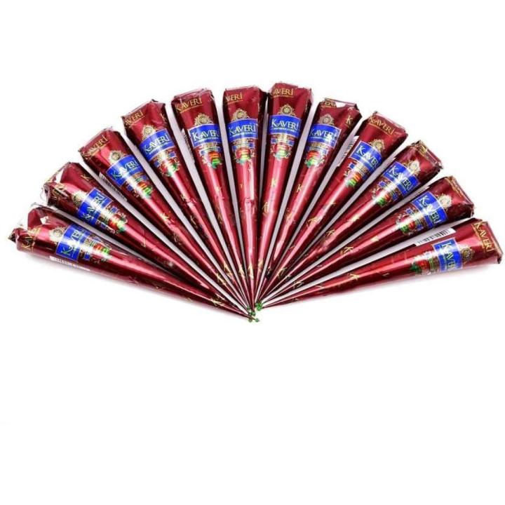 High Quality - The paste of Kaveri mehendi cone is being prepared with the world class premium quality of henna leaves, Enriched with the goodness of eucalyptus oil and clove bud oil. Our unique customized blend of henna paste is created so naturally, its herbal elements enhance its quality, color and appearance.