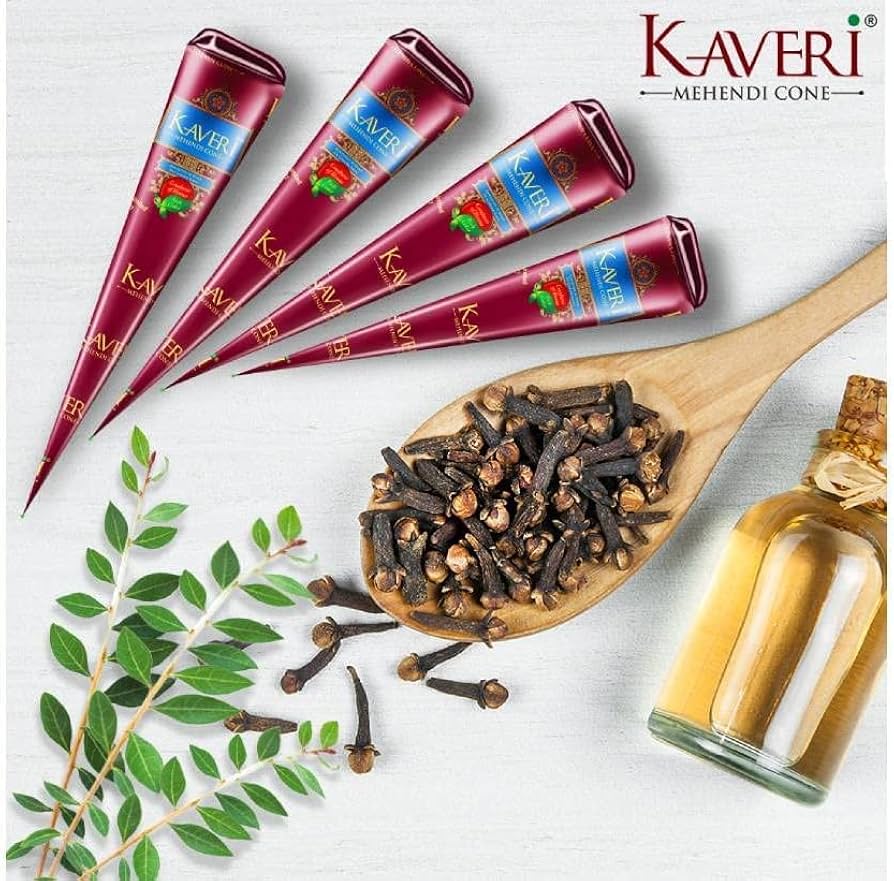 High Quality - The paste of Kaveri mehendi cone is being prepared with the world class premium quality of henna leaves, Enriched with the goodness of eucalyptus oil and clove bud oil. Our unique customized blend of henna paste is created so naturally, its herbal elements enhance its quality, color and appearance.