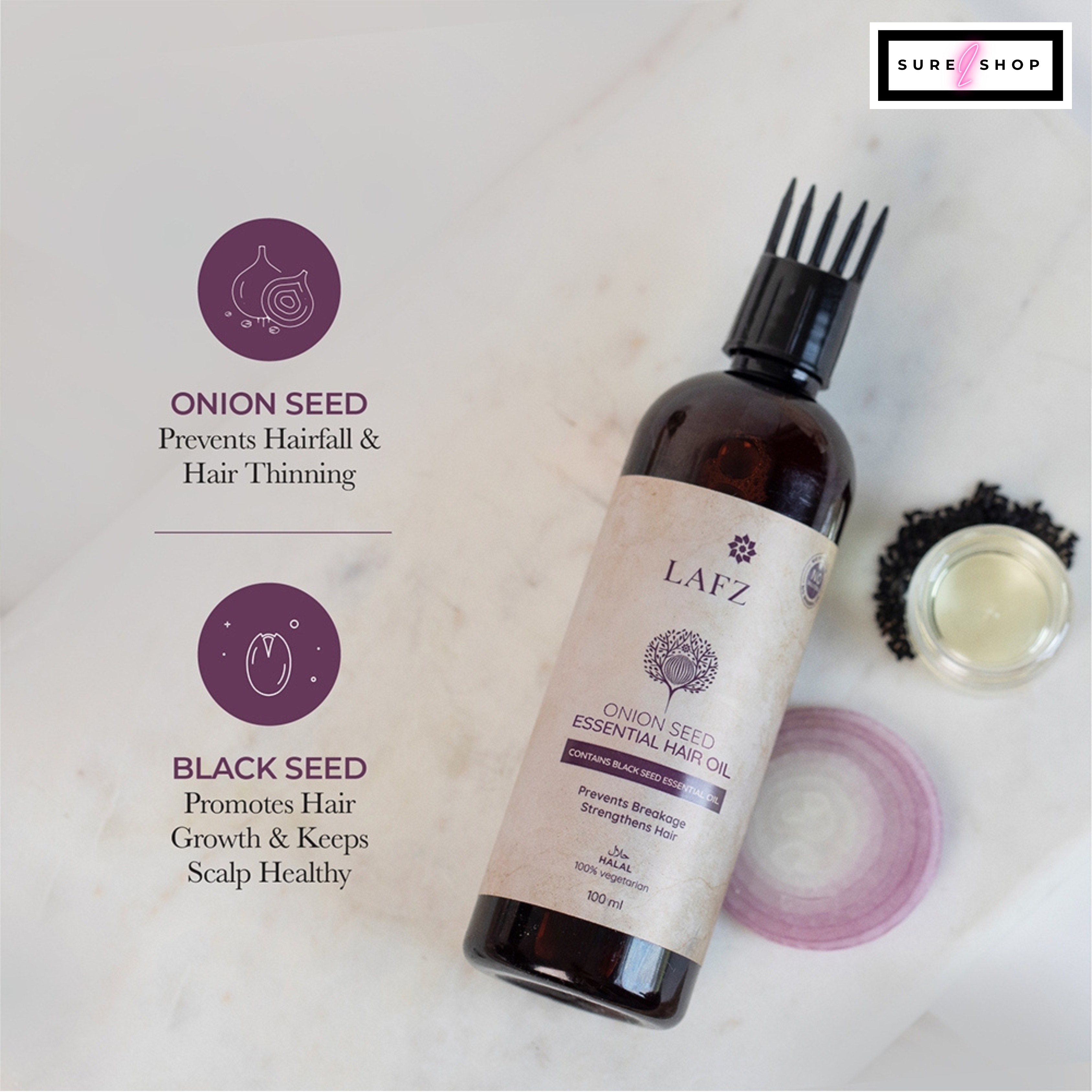 But that's not all! All the products at Lafz are Halal-certified, 100% vegan, and free from any harsh chemicals, making it an ideal choice for Muslims who prefer using natural and ethical products that adhere to their Islamic beliefs. You can rest assured that Lafz Onion Seed Essential Oil is gentle on your hair and scalp, and it is suitable for all hair types.
