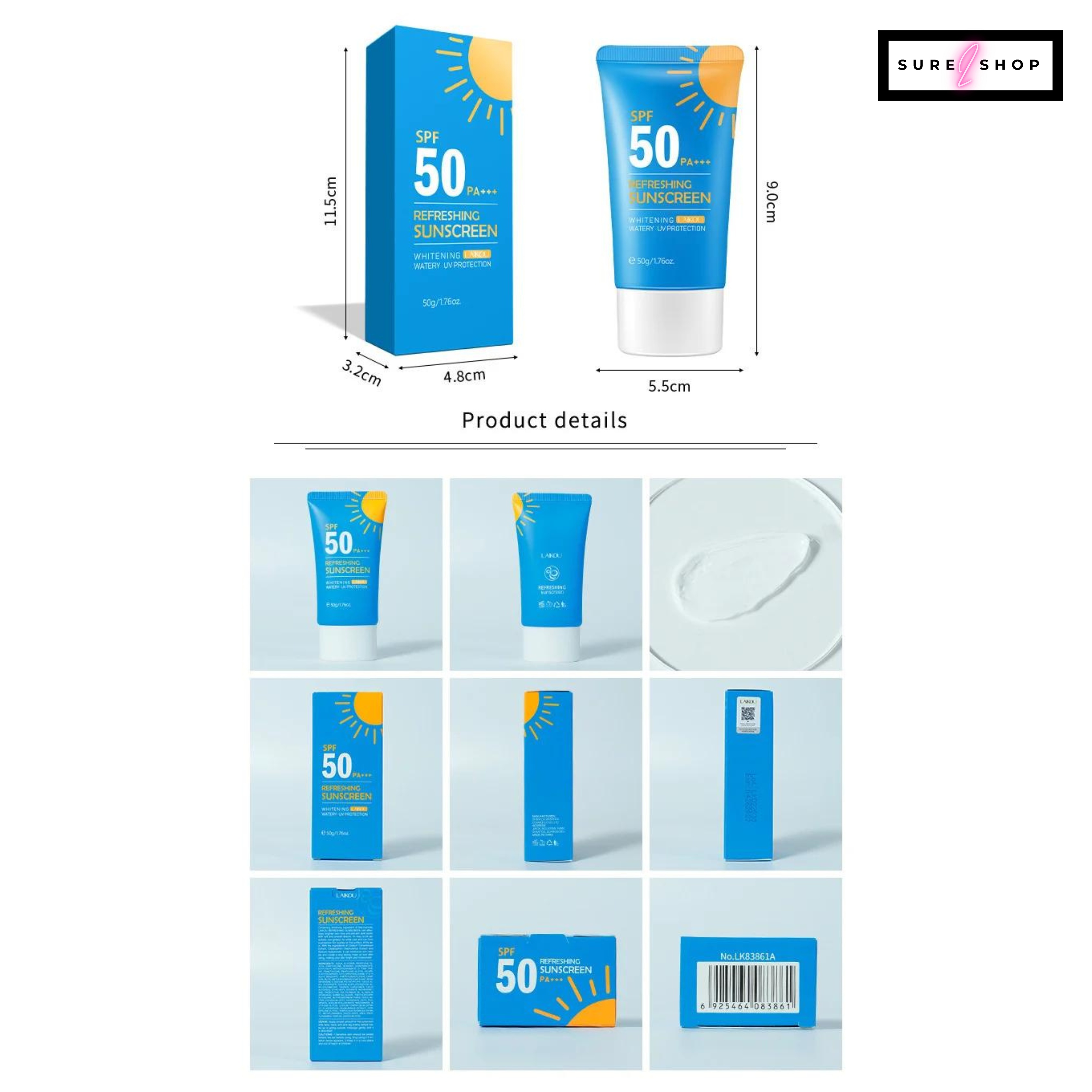 LAIKOU Refreshing Sunscreen Moisturizing Whitening Sun Cream Oil-control Sunblock Cream Bleaching Facial Skin Care SPF 50 PA+++