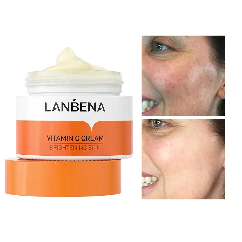 Product DescriptionBrand: LANBENA -- A Professional Efficient Skin Care BrandAll products have been tested by authoritative institutions and are excellent qualified products. LANBENA is committed to researching effective skin care products and has a great reputation on all platforms.Ingredientsï¼ Water, Glycerin, Hippophae Rhamnoides Oil, Vaccinium Macrocarpon Seed Oil, Nicotinamide, Sodium Ascorbyl Phosphate (Vitamin C), Hyaluronic AcidEffects: Brightening the complexion, whitening skin, improving dull skin, and nourishing and moisturizing skinHow To UseAfter cleansing, apply toner first, then apply an appropriate amount of cream onto your facial skin, and gently massage with fingers till it is fully absorbed Dark SpotsLANBENA Vitamin C Whitening Face Cream Nourish Brighten Improve Dull Skin Remove Freckle Anti Aging Refreshing Moisturizing 50g