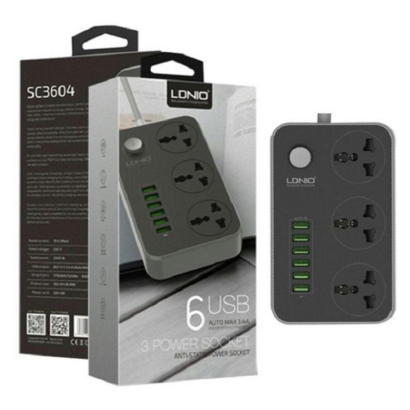 - LDNIO 6 USB Ports And 3 Power Socket Extension Multiplug