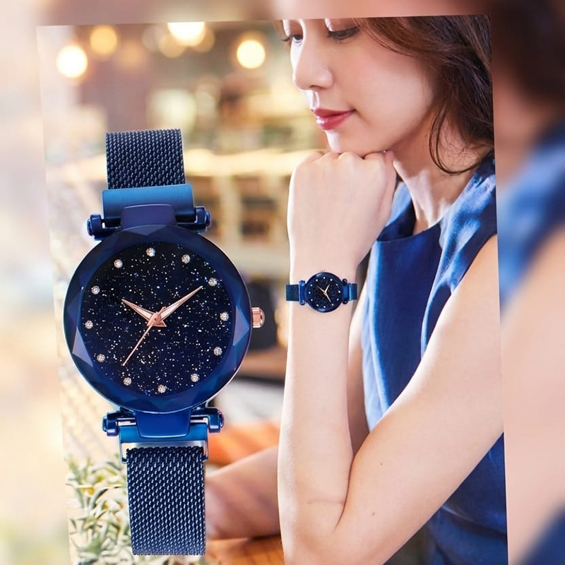 Women Luxury Starry Sky Roma Ladies Magnet WristwatchLuxury Design: Featuring a sophisticated starry sky motif, this quartz watch exudes elegance and sophistication for the modern woman.
