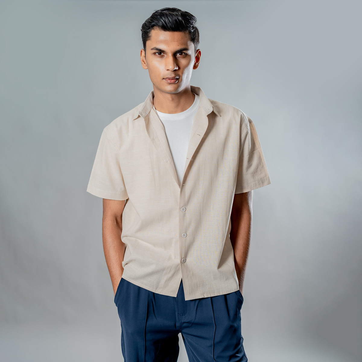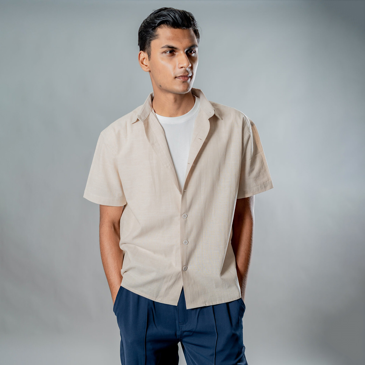 Say hello to the chillest flex of the season — Our Linen Box Fit Oversized Half Sleeve Shirt