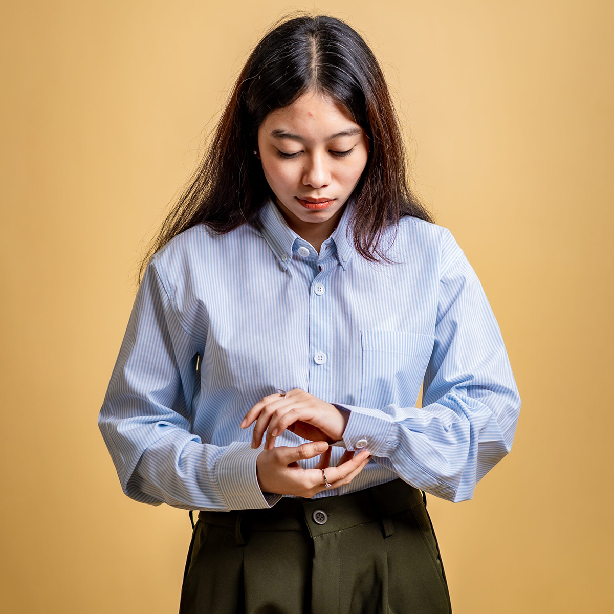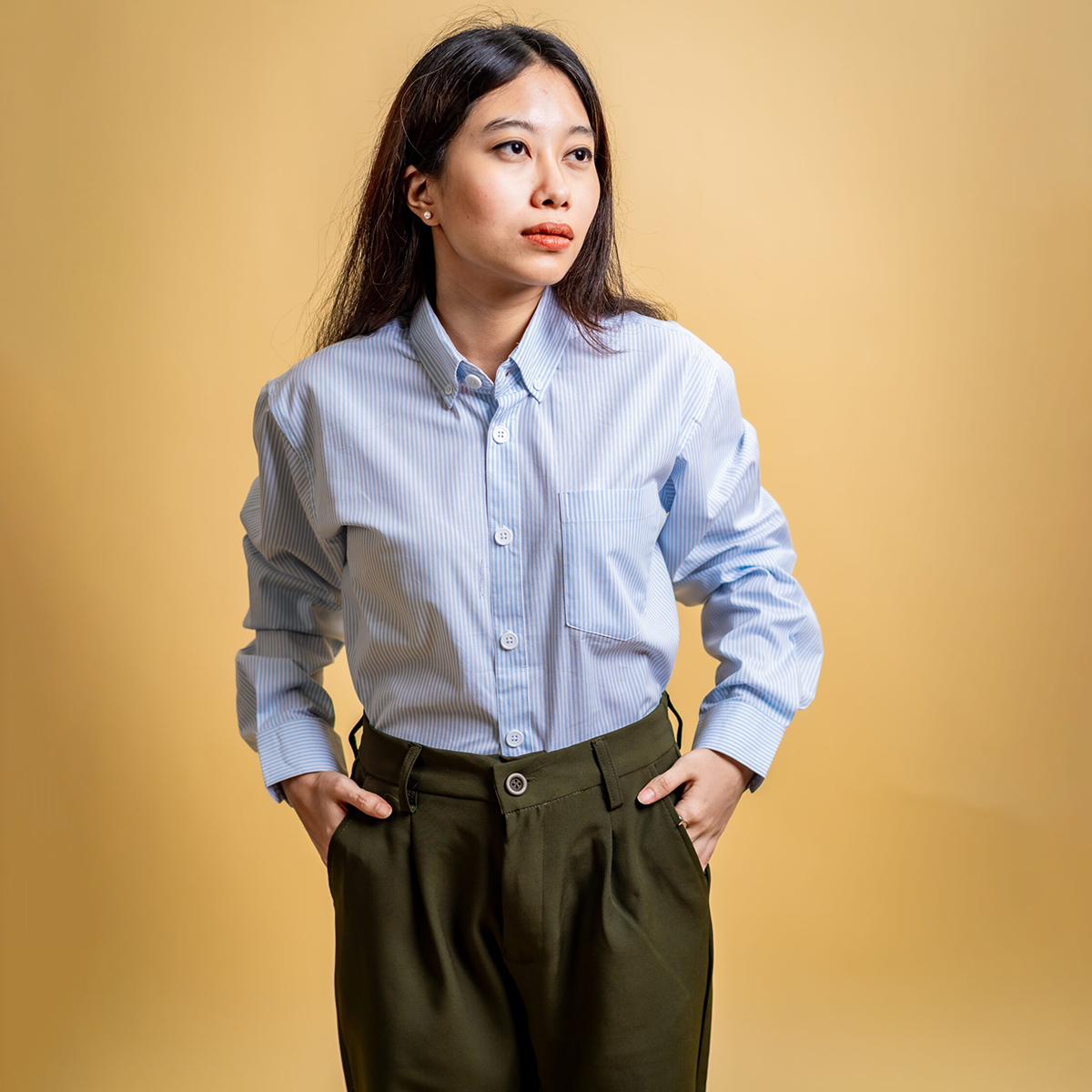 Lightweight and breathable fabric for all-day comfort Elegant draped design adds a flowy, relaxed look Versatile rust color pairs easily with jeans, skirts, or trousers Button-down front for a classic, timeless style Long sleeves with a loose fit for effortless layering Perfect for both casual outings and office wear