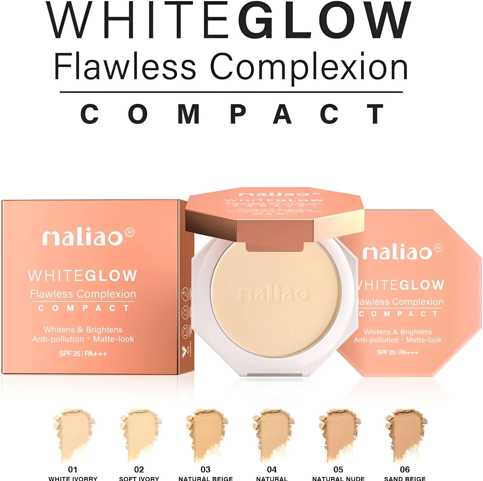 Maliao White Glow Flawless Complex Compact Powder Whitens & Brightens Anti-pollution Matte look Spf 25 PA+++ Maliao Fce Powder