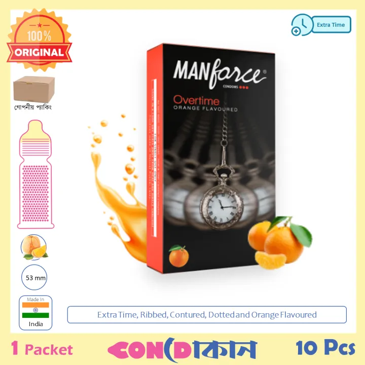 Manforce Overtime Extra Time Orange Flavoured Condom 1 Pack (10 Pcs) Indian