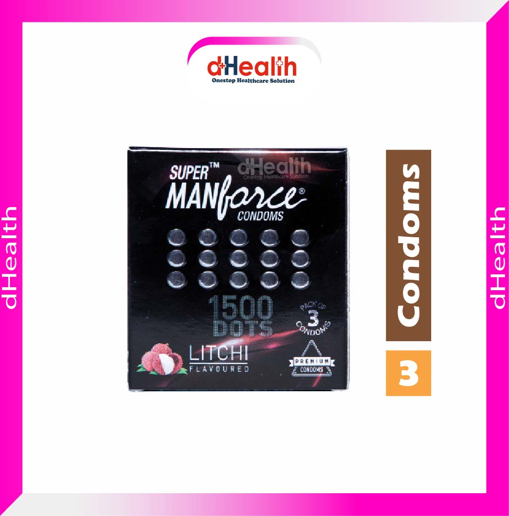 Brand: Manforce Litchi Flavour 1500 Dots Quantity: Single Pack (3x1=3 pcs) Length: 180mm Width: 53mm +/- 2mm Country of Origin: India Provide greater sensitivity and a sleeker feel Transparent and lubricated natural rubber latex condoms Dermatologically tested and 100% electronically tested, 100% safe and secure