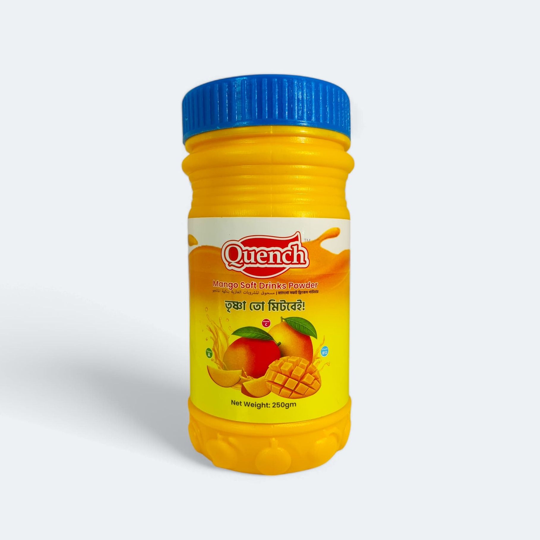 - এক গ্লাস (২৫০ মি.লি.) ঠান্ডা পানিতে ২ চা-চামচ (প্রায় ২০ গ্রাম) Quench Soft Drinks Mango Flavor মিশিয়ে নিন।