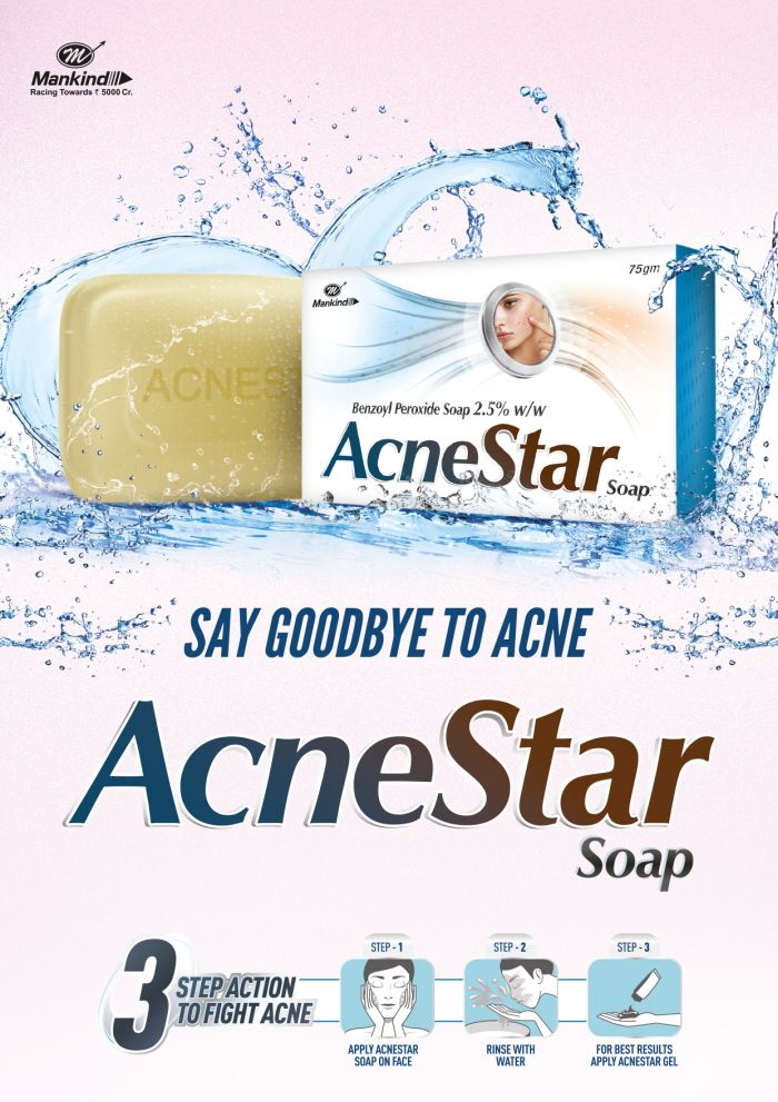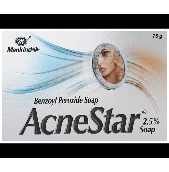 Acnestar anti-pimple soap consists of anti-bacterial properties that help in reducing acne and other skin issues. It provides deep nourishment and cleansing if used regularly twice a day or as suggested by the dermatologist.Acnestar 2.5% Soap is an antiseptic that is effectively used on the skin to manage and prevent acne.It works by stopping the growth of bacteria on your skin.Reduces painful lumps and clears the dirt and excess oil from your skin.Contains Benzoyl peroxide that manages acne in three ways: by killing bacteria, peeling away dead skin cells and drying excess skin oil.Most effective in getting rid of the dirt accumulated to clear up the pores.Benzoyl peroxide works as a peeling agent. It increases skin turnover, clears pores, and reduces the bacterial count (specifically acnes). Apply Acnestar soap and gently work up a lather using a circular motion.Wash off and pat dry.Use twice daily for better results.Read the label carefully before use.