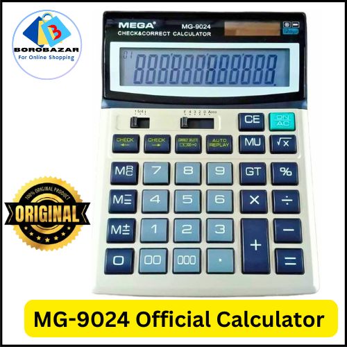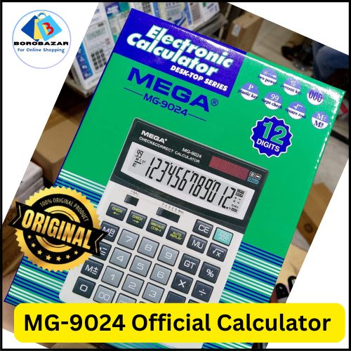 The mega MG-9024 desktop calculator is a reliable and efficient tool for everyday calculations, perfect for home, office, or school use. Featuring a large, easy-to-read 12-digit display and a responsive keypad, it ensures accurate and quick number crunching. This calculator includes essential functions like addition, subtraction, multiplication, and division, along with advanced options such as percentage, memory keys, and square root. Its compact and lightweight design fits neatly on any desk or workspace. With a durable build and dual power source (solar and battery), the MG-9024 provides long-lasting performance and convenience for all your computational needs.