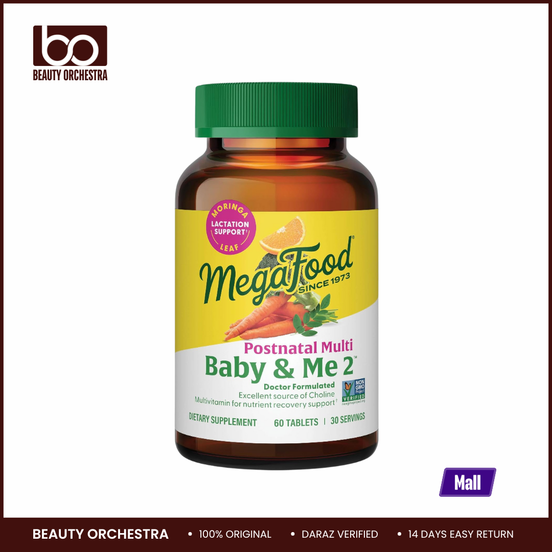 MegaFood Baby & Me 2 Postnatal Vitamins are specially formulated to support women after childbirth and during breastfeeding. Enriched with Folate (natural folic acid form), Choline, Iodine, Vitamin D, Moringa Leaf, and other key nutrients, this supplement promotes energy, mood balance, milk production, and overall postpartum recovery. Made with real food and premium ingredients, it helps new mothers feel nourished and supported every day.