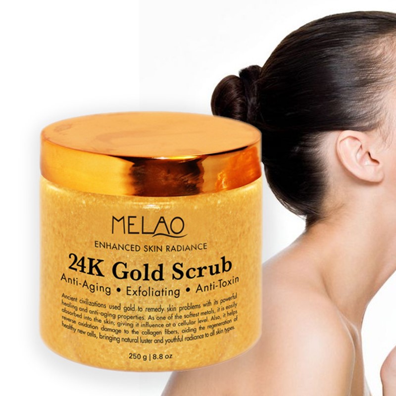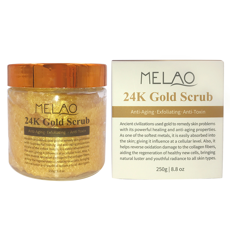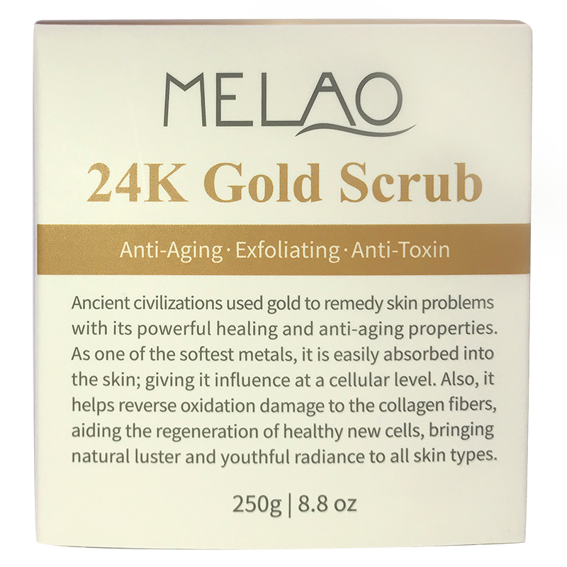 24K Gold Body Scrub and Facial Scrub is expertly formulated to moisturize, brighten, and intensively repair skin foil which is widely used in high-end anti aging skin care products.