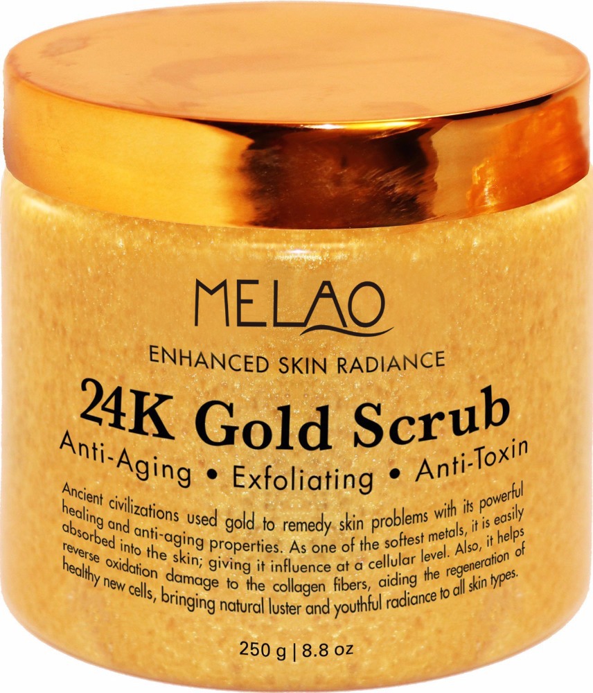 24k Gold is one of the main ingredients of this body scrub and facial scrub, also helped fight acne because of its antibacterial properties.