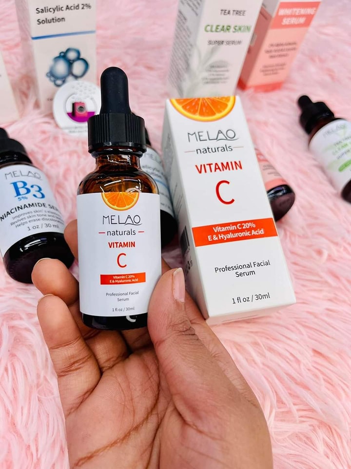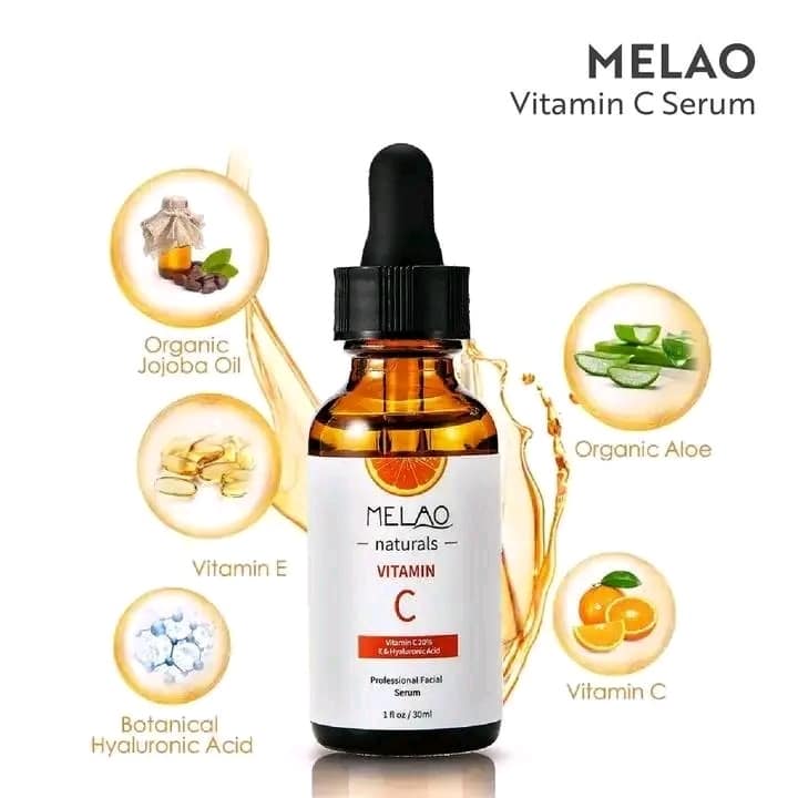 Melao Vitamin C Serum will effectively diminishes the appearance of fine lines and wrinkle, stimulates the production of collagen which makes your skin more vibrant, firm and youthful. It will enhances your skins rate of exfoliation for a smoother, more radiant complexion. It Contains Antioxidants that will greatly reduce skin damage caused by the sun, pollution and impurities in the air