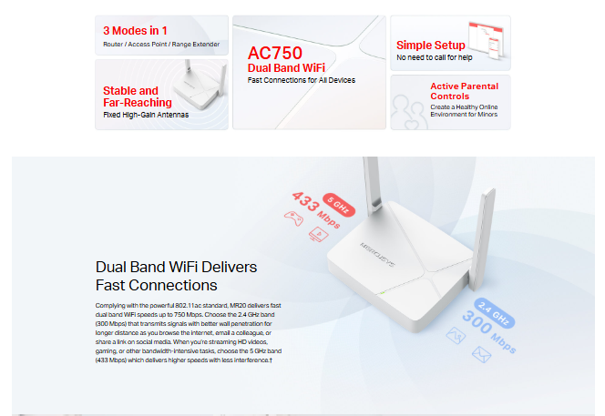300 Mbps (2.4 GHz) + 433 Mbps (5 GHz),