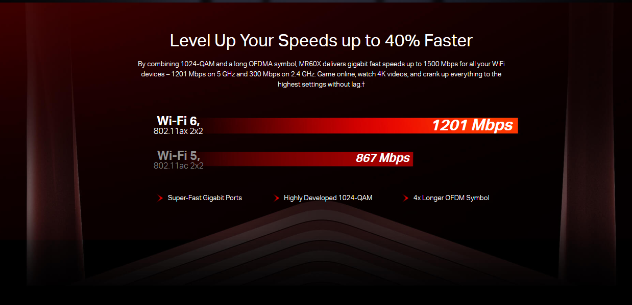 1201 Mbps (5 GHz) + 300 Mbps (2.4 GHz)