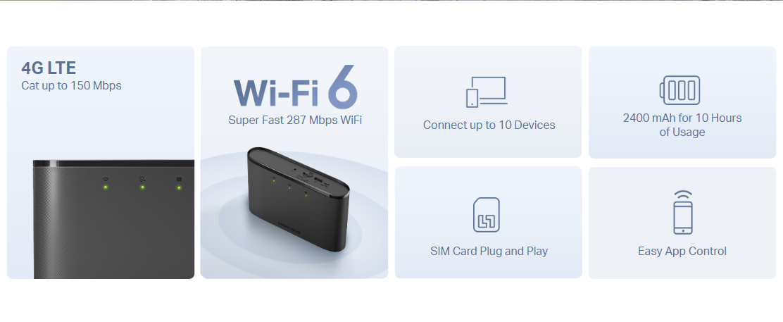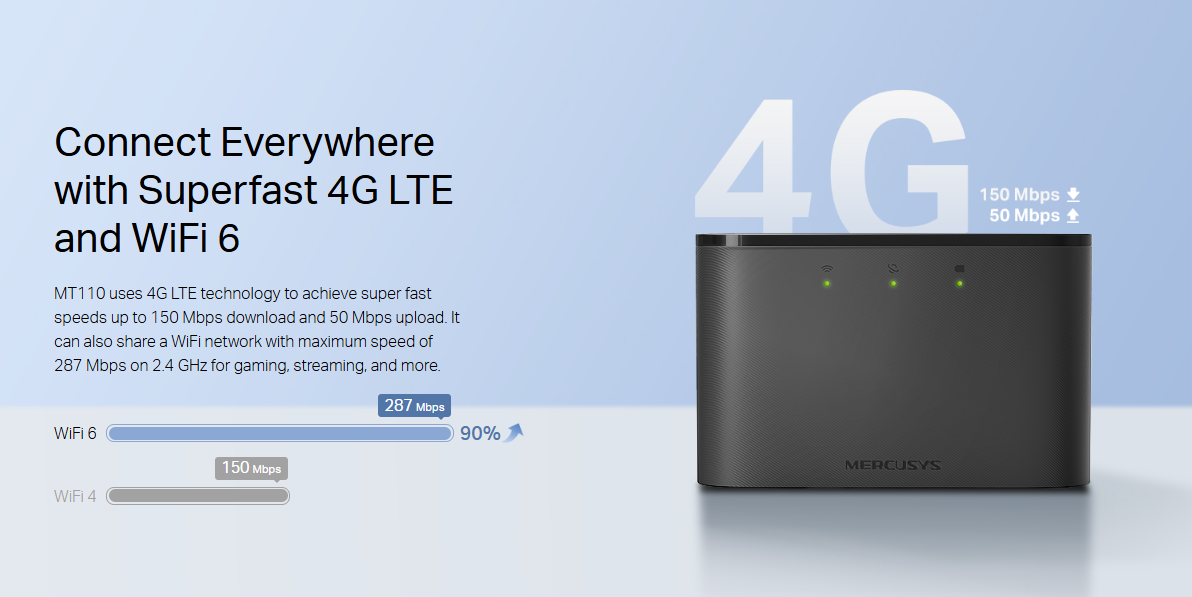 4G LTE Speed: DL: 150 Mbps, UL: 50 Mbps