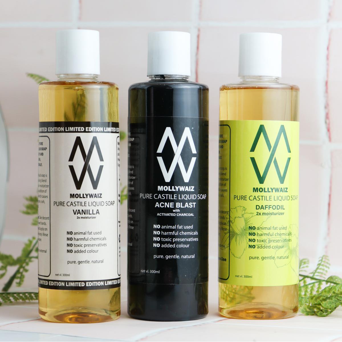 Mollywaiz Pure Castile Liquid Soap Morning-Day-Night BUNDLE (300x3=900ML)