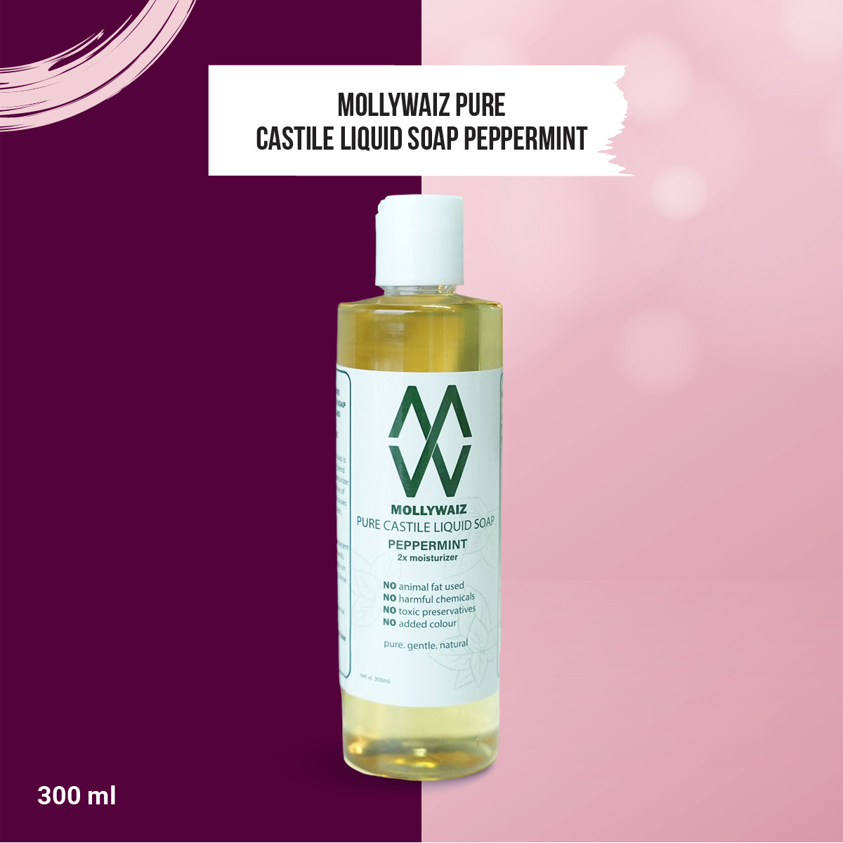 Mollywaiz Pure Castile Liquid Soap PEPPERMINT 300ML (Facewash & Body Wash)