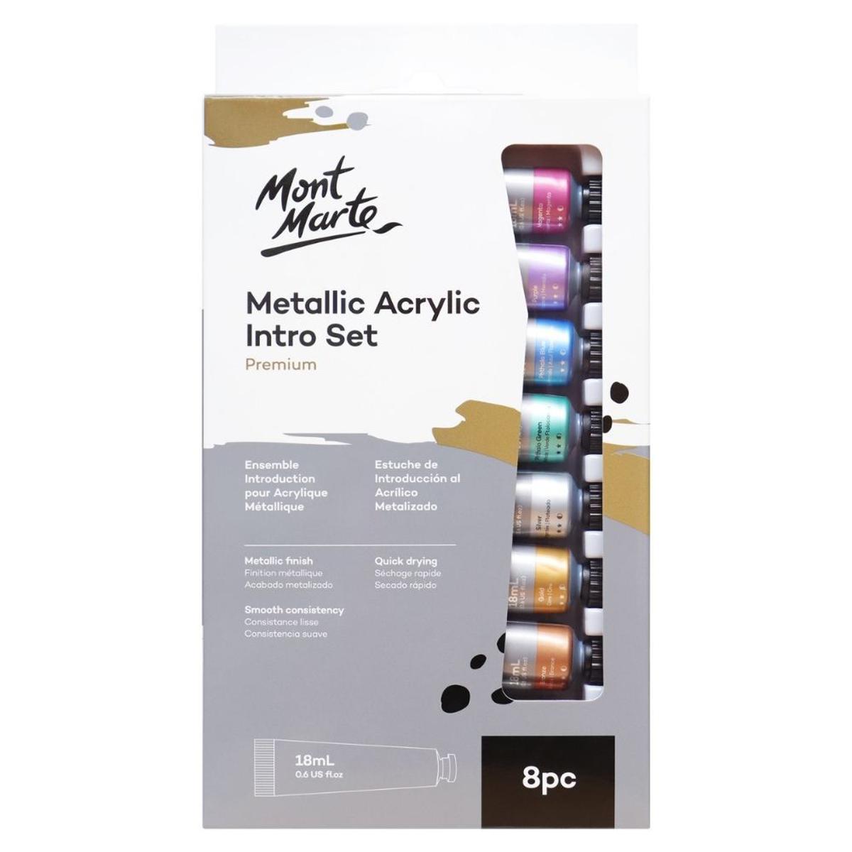 Mont Marte metallic acrylic paints are a great choice for adding shimmer and shine to your art and craft projects. This set of 8 beautiful colours features a luxurious metallic sheen and is suitable for a range of surfaces such as canvas, card and wood. You'll love the smooth consistency and eye-catching finish of these metallic acrylic paints. They also offer good coverage and dry quickly, making them suitable for use at home or in the classroom.