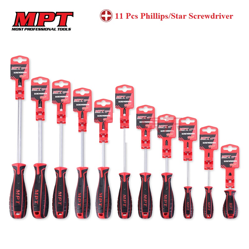 MPT 11 Pcs Non-Slip Magnetic Tip CR-V Phillips/Star Screwdriver Set MHA01011P