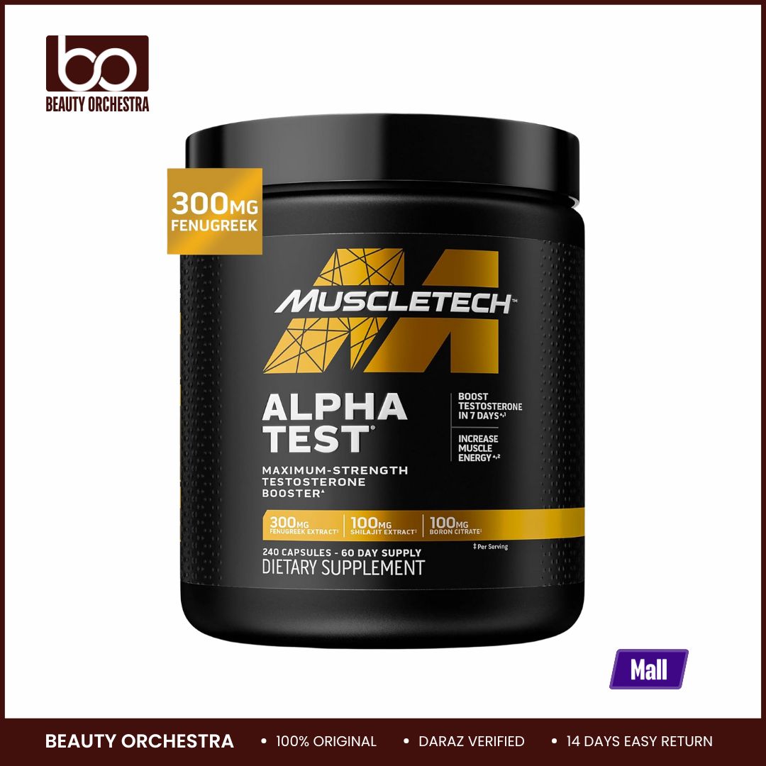 MuscleTech AlphaTest is a testosterone booster formulated for men aiming to enhance muscle growth, stamina, and energy. It contains key ingredients such as Tribulus Terrestris and Boron, which are associated with supporting testosterone production.
