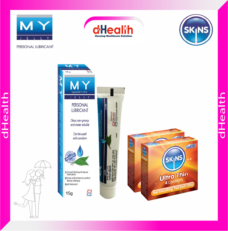 1 My Jelly 15gm & 2,s SKINS Ultra Thin Premium Condoms Combo Pack-