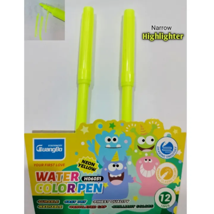 Narrow Highlighter Neon Yellow Water Color Pen 2 Piece