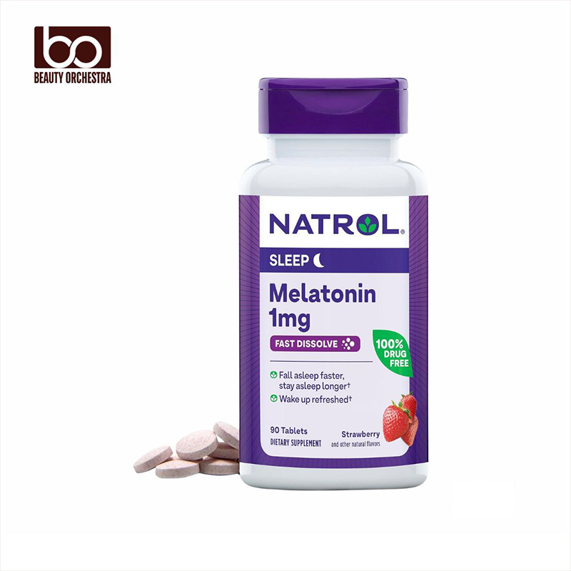 Natrol Fast Dissolve Melatonin 1 mg is a dietary supplement designed to support restful sleep. Each bottle contains 90 strawberry-flavored tablets, providing up to a 90-day supply.