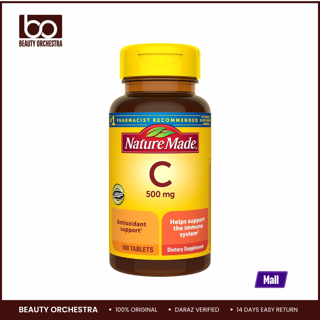 Nature Made Vitamin C 500 mg tablets provide a daily dose of essential vitamin C to support immune health and antioxidant protection. This supplement helps the body combat free radicals, supports collagen production for healthy skin, and enhances iron absorption for overall well-being.