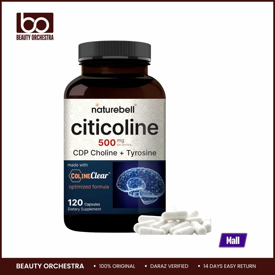 Formulation: Each serving contains 500 mg of Citicoline (CDP‑Choline) combined with 50 mg of L‑Tyrosine for a dual‑action brain health formula WebMD+14NatureBell+14IBSpot+14eBay+3GoSupps+3Walmart Business+3.
