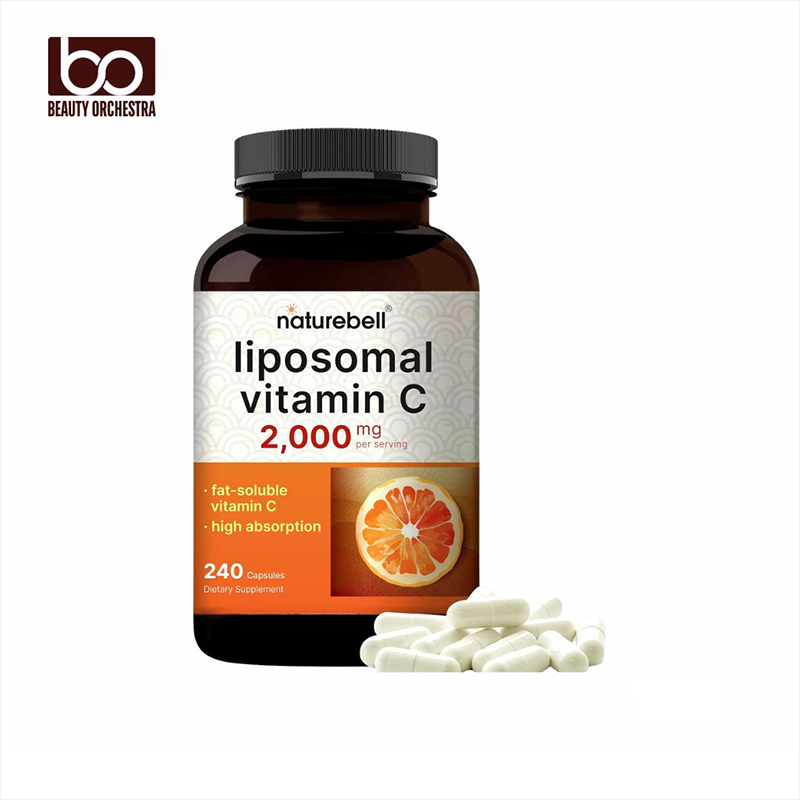 NatureBell's Liposomal Vitamin C supplement offers a potent dose of 2,000 mg per serving, delivered through 240 capsules per bottle, equating to 80 servings. This high-strength formula utilizes pure fat-soluble ascorbic acid, designed for enhanced bioavailability and absorption.