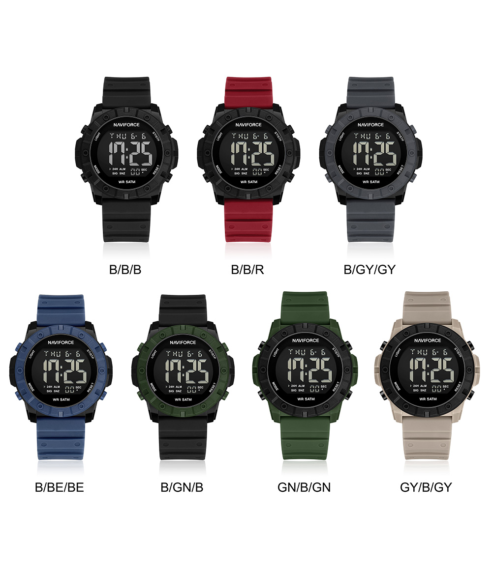 The NAVIFORCE NF7110 is designed for young and trendy individuals, combining the practicality of an electronic dial with cutting-edge aesthetics. This watch features an alarm, hourly chime, and 5ATM water resistance, with a luminous mode for easy time reading in any light condition. Its 50-meter water resistance is ideal for daily rain and hand washing, while the acrylic crystal maintains high transparency for better visual clarity.