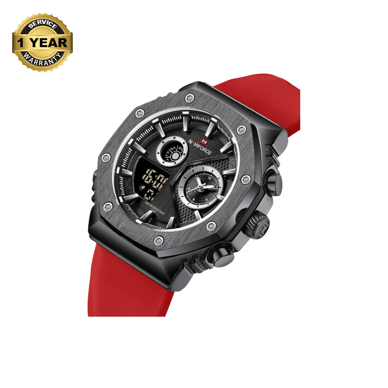 NAVIFORCE NF9216 Red TPU Silicone Strap Dual Time Watch For Men - Black & Red