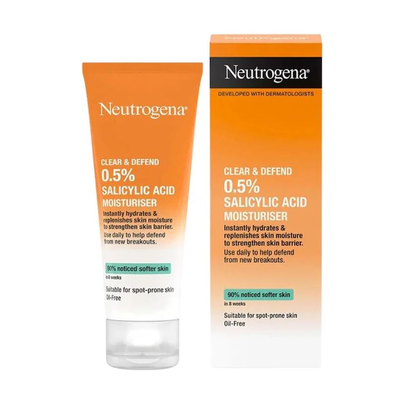 Neutrogena® Clear & Defend 0.5% Salicylic Acid Oil-Free Moisturiser is clinically proven to help prevent spots and fade spot marks while respecting the skin’s natural balance, for a smoother, clearer complexion.
