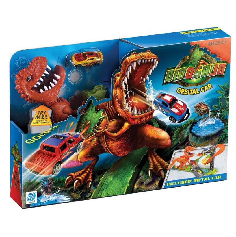 - This product had a dinosaur and 1 alloy car, can be equipped with background music. Develop the child's imagination, let the child into a sense of role playing. The splicing rail, let the baby often begin, more thinking. Including IC which can make sound. This is for the child the best gift of a growth period Easy to install. Various design & size & color available. Safety nice pack. Carefully check every product accessory,even the little parts. Good communication sales team.