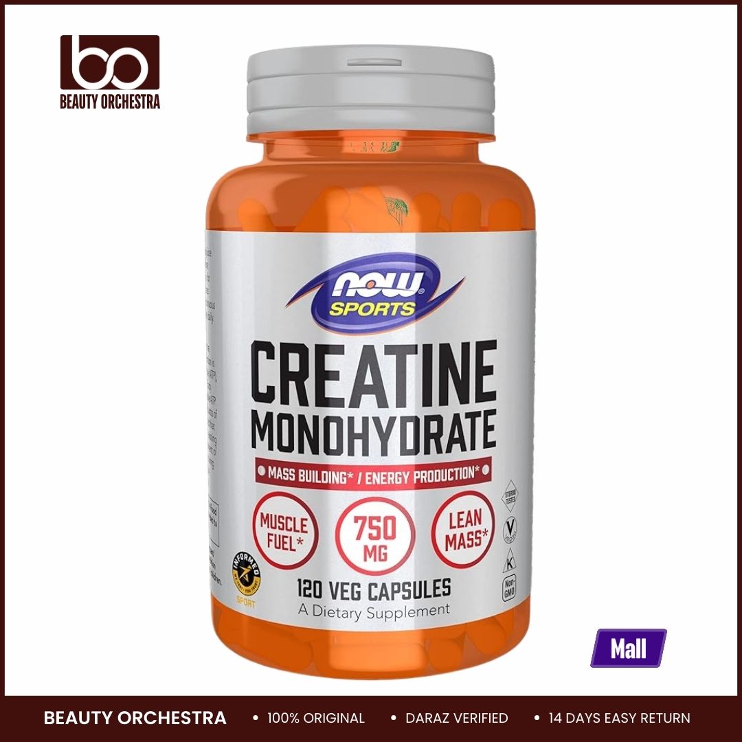 NOW Foods Sports Nutrition's Creatine Monohydrate 750 mg Veg Capsules are designed to support mass building and energy production. Creatine is a naturally occurring compound in the body, primarily found in skeletal muscle, where it serves as a precursor to adenosine triphosphate (ATP), the chemical energy used by cells. Supplementing with creatine can help maintain existing muscle tissue, support the growth of lean mass, and promote optimal performance during short bursts of intense exercise.