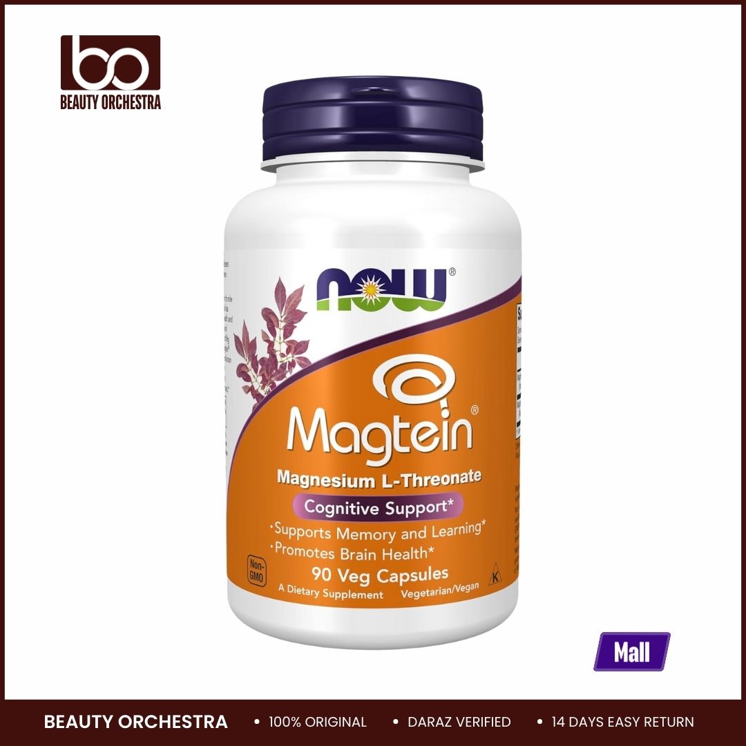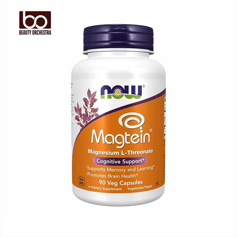 NOW Foods' Magtein™ is a dietary supplement featuring Magnesium L-Threonate, a patented form of magnesium designed to support cognitive health. This formulation is noted for its ability to cross the blood-brain barrier effectively, promoting brain health, memory, and learning.